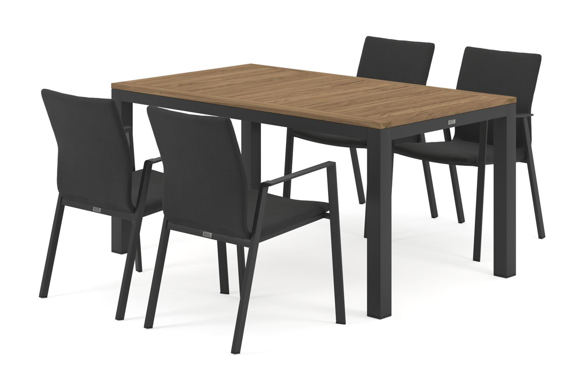 Varese tuinset in zwart aluminium en naturel teak tafelblad met 4 stapelbare Madura tuinstoelen | Exterioo