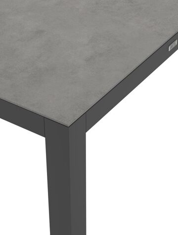 Het frame van de tafel is gemaakt uit roestvrij aluminium, een sterk, maar toch licht materiaal dat makkelijk verplaatsbaar is. Het oppervlak is glad afgewerkt waardoor het geen vuil aantrekt en onderhoudsvriendelijk is. De poedercoating zorgt voor de UV- en weerbestendigheid van je meubel.