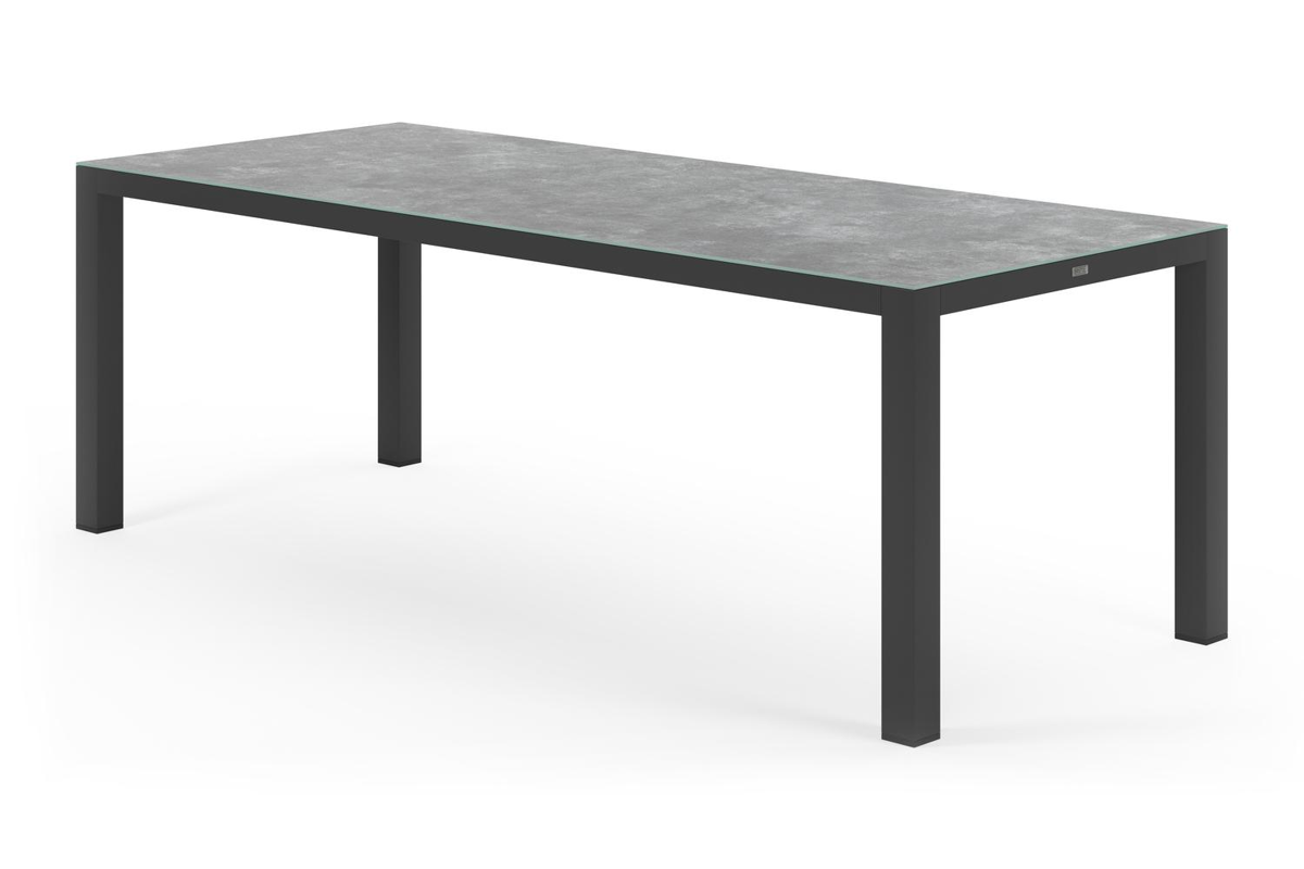 Varese tuintafel in zwart aluminium en keramisch glas grijs - L 220 x B 92 x H 73,5 cm | Exterioo