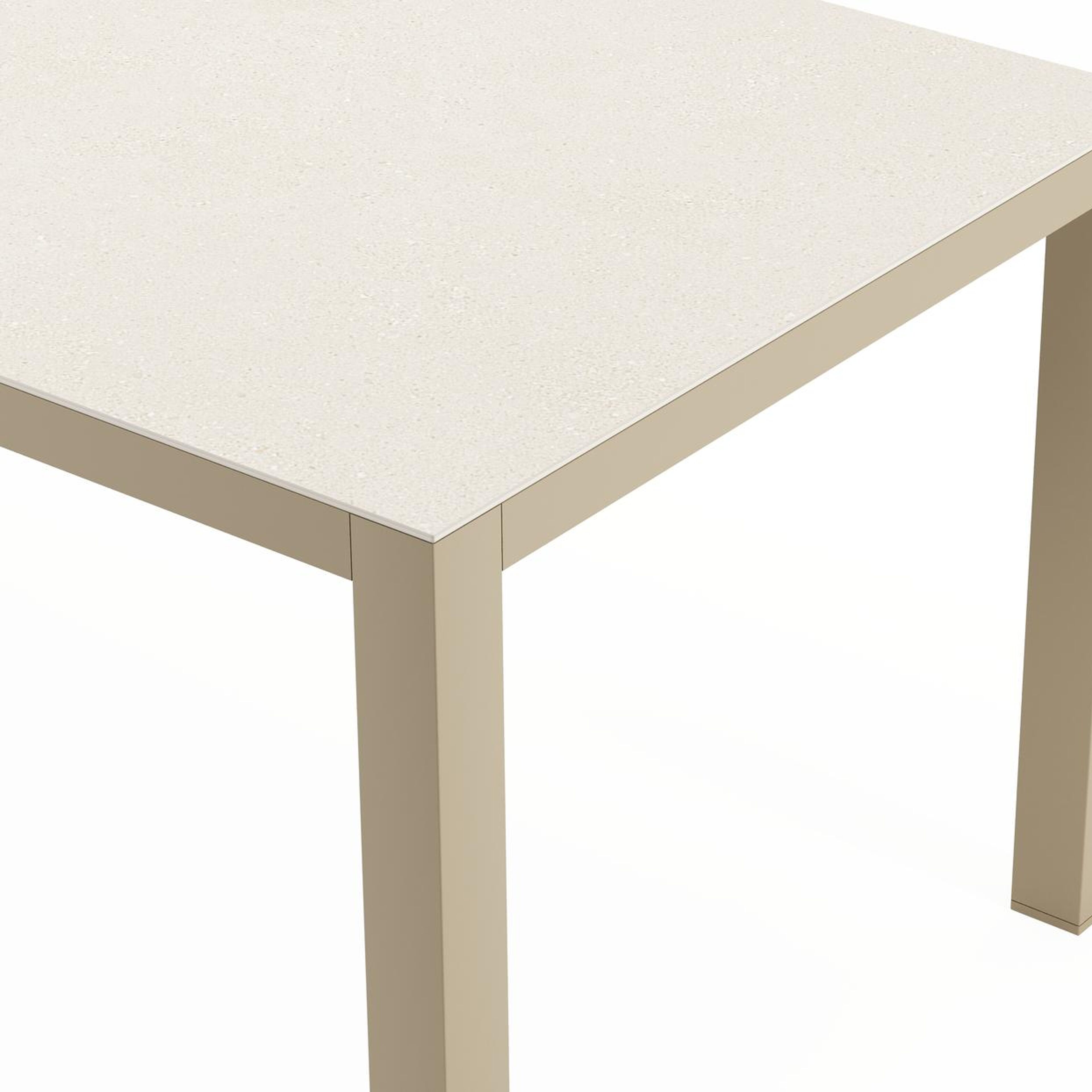 Het frame van de tafel is gemaakt uit roestvrij aluminium, een sterk, maar toch licht materiaal dat makkelijk verplaatsbaar is. Het oppervlak is glad afgewerkt waardoor het geen vuil aantrekt en onderhoudsvriendelijk is. De poedercoating zorgt voor de UV- en weerbestendigheid van je meubel.