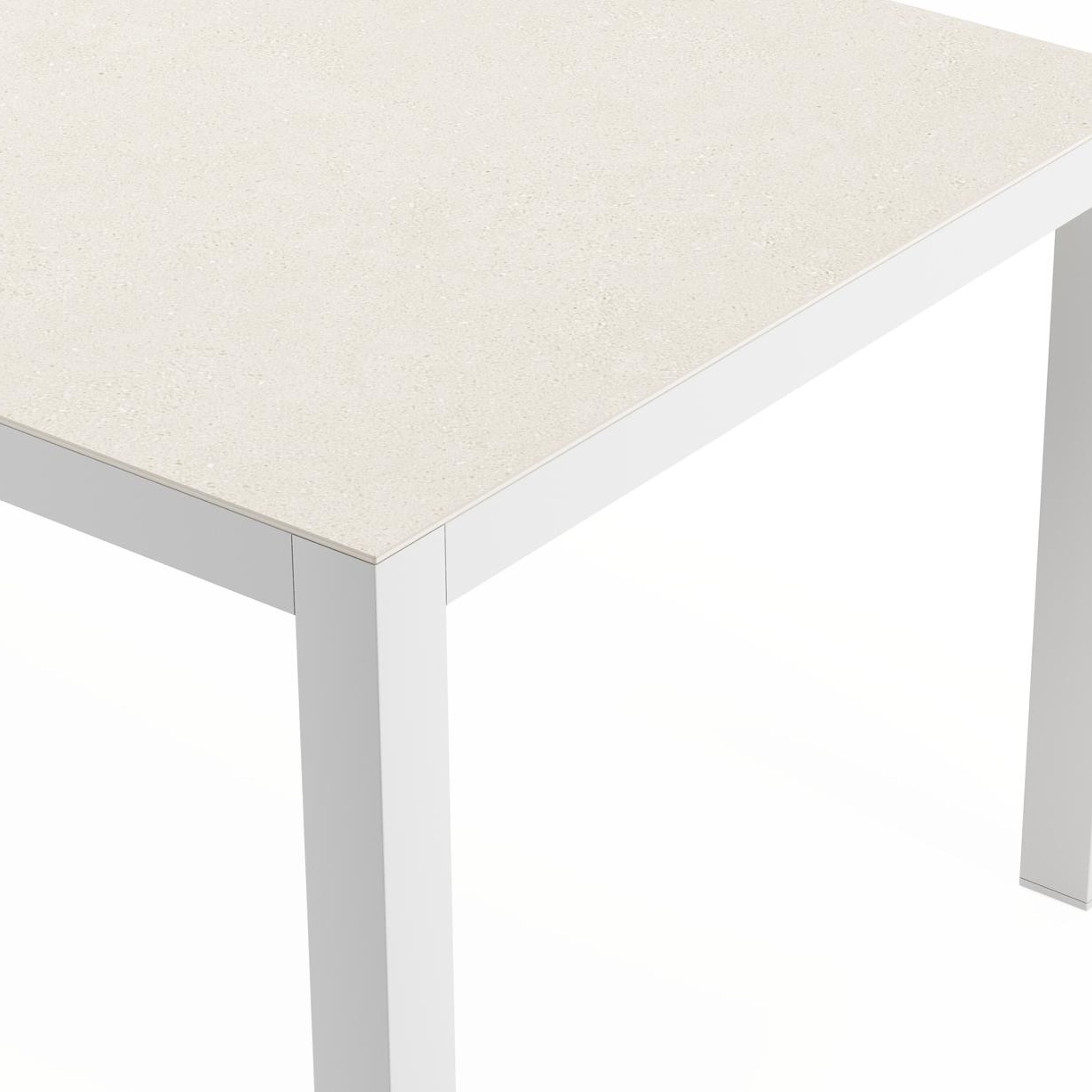 Het frame van de tafel is gemaakt uit roestvrij aluminium, een sterk, maar toch licht materiaal dat makkelijk verplaatsbaar is. Het oppervlak is glad afgewerkt waardoor het geen vuil aantrekt en onderhoudsvriendelijk is. De poedercoating zorgt voor de UV- en weerbestendigheid van je meubel.