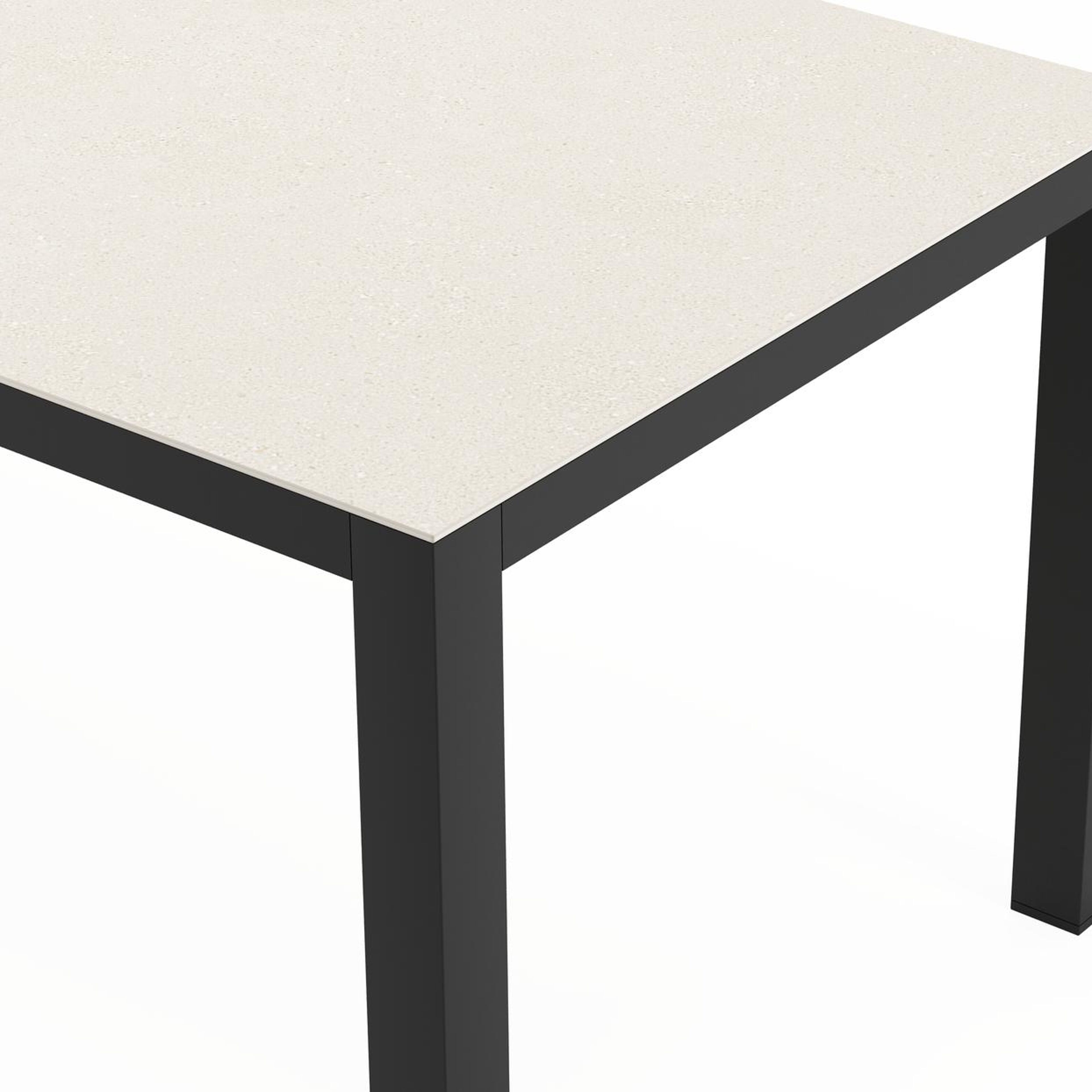 Het frame van de tafel is gemaakt uit roestvrij aluminium, een sterk, maar toch licht materiaal dat makkelijk verplaatsbaar is. Het oppervlak is glad afgewerkt waardoor het geen vuil aantrekt en onderhoudsvriendelijk is. De poedercoating zorgt voor de UV- en weerbestendigheid van je meubel.