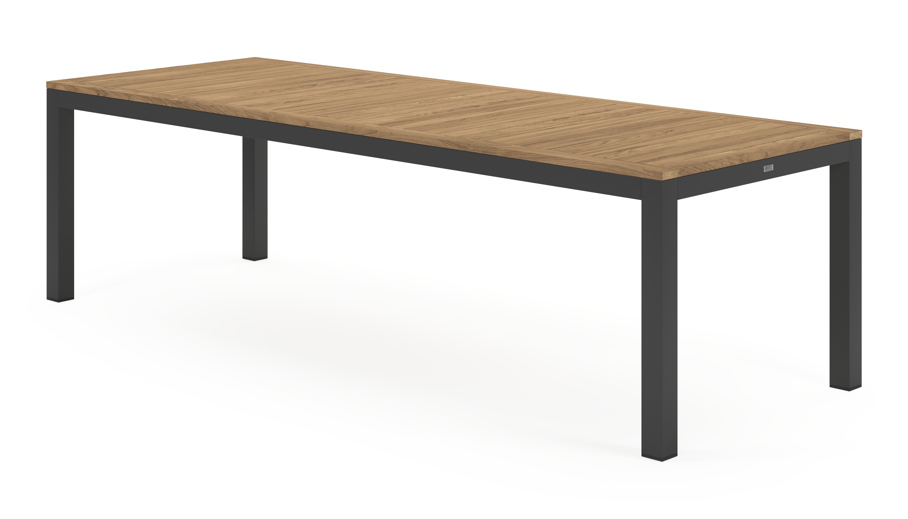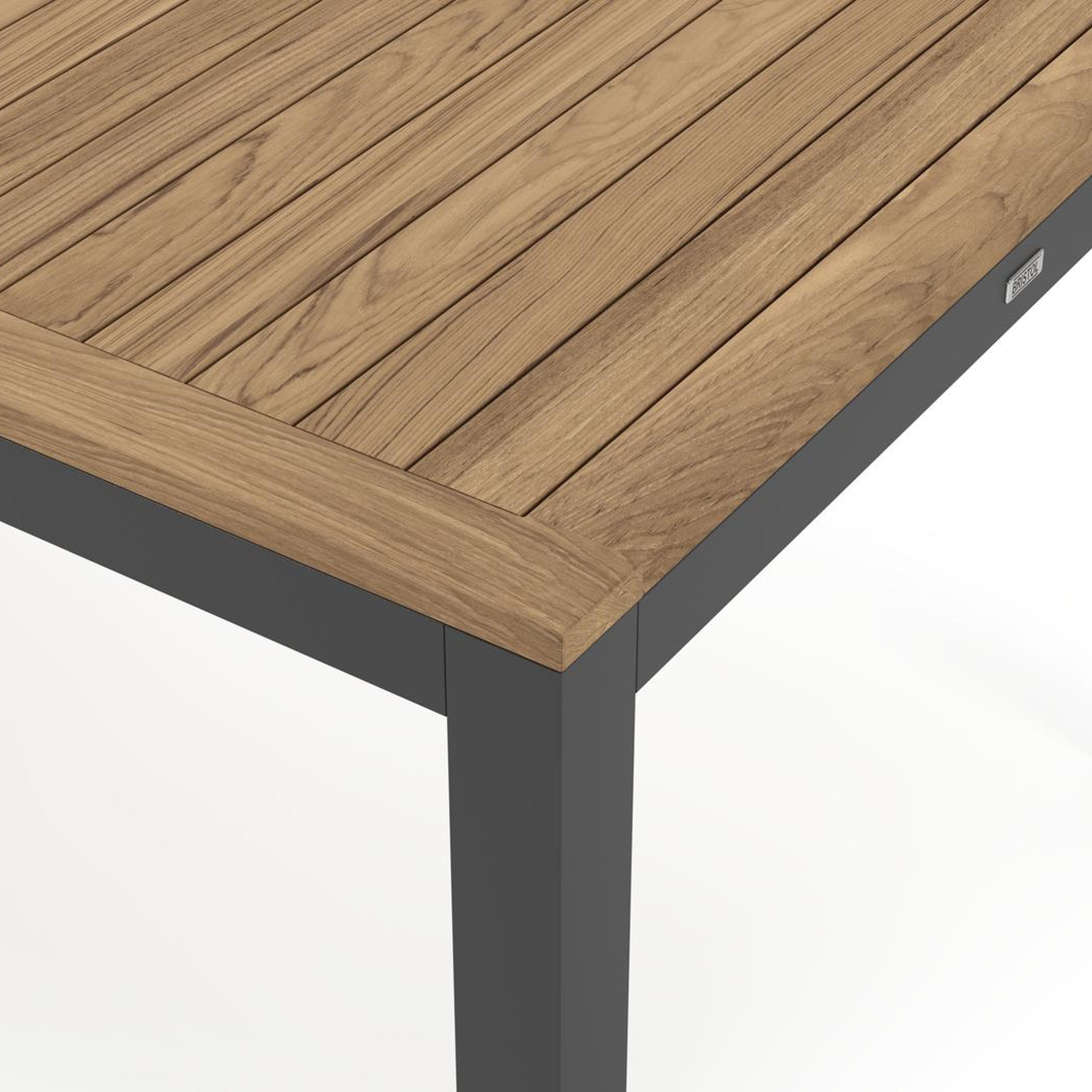 Een tafelblad uit teak staat gelijk aan bijzondere kwaliteit en natuurlijk design. Teak is een kwalitatieve houtsoort gekenmerkt door zijn hardheid. Aangezien hout leeft, kan de structuur of kleur licht anders zijn dan op het beeld weergegeven.