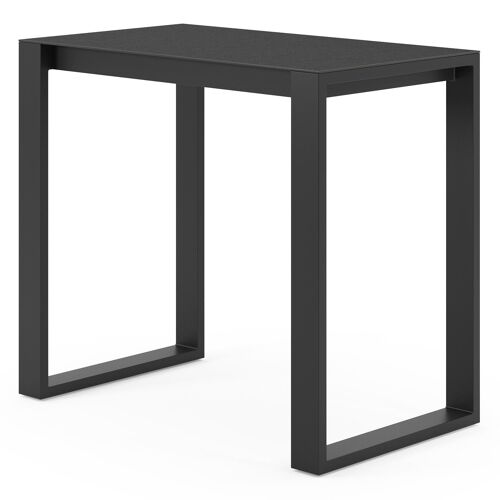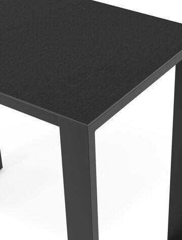 Klaar voor een gezellig apero moment in de tuin? Met de Verato bartafel doe je dit in stijl. De Verato bartafel heeft een strak, U-vormig onderstel. Het frame is gemaakt van aluminium een licht, maar sterk en roestvrij materiaal dat zeer geschikt is voor tuinmeubelen. Deze tafel is afgewerkt met een Nero Black tafelblad. Dit tafelblad is een aanrader voor wie houdt van minimalistisch en tijdloos design. Zoals de naam doet vermoeden is dit een vrij effen zwart tafelblad met een lichte spikkel in. Het voordeel van volkeramische tafelbladen is dat ze krasbestendig zijn en bestand zijn tegen alle weersomstandigheden.