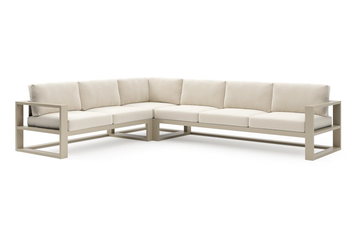 Verato loungehoek in beige aluminium met althea off white all weather cosytica kussen | Exterioo