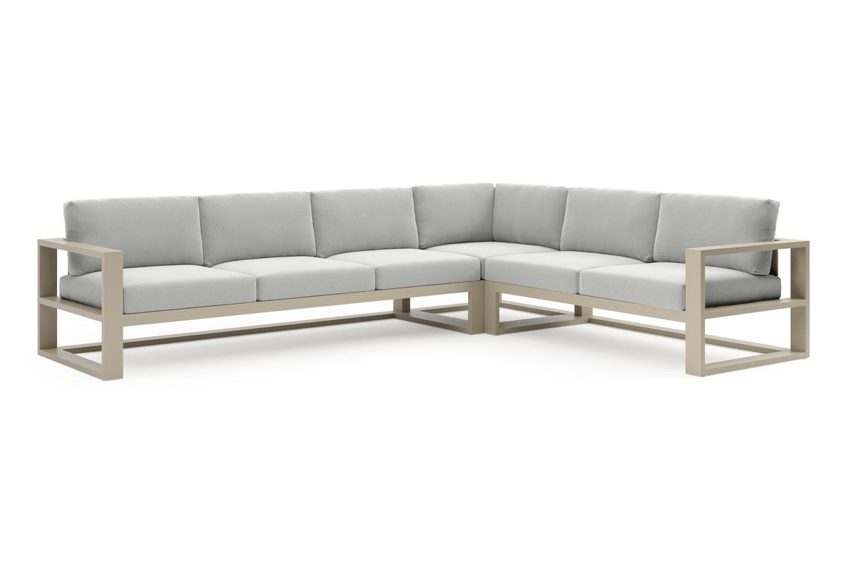 Verato loungehoek in beige aluminium met natte grey chine all weather sunbrella® luxe kussen | Exterioo