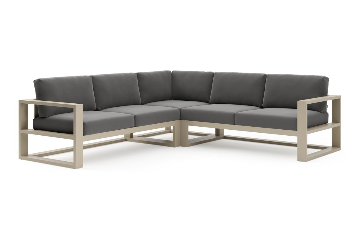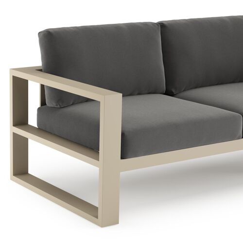 Verato loungehoek in beige aluminium met natte charcoal chine all weather sunbrella® luxe kussen | Exterioo