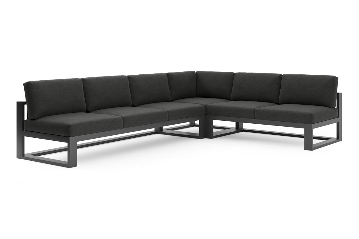Verato loungehoek in zwart aluminium met chartres sooty all weather sunbrella® luxe kussen | Exterioo
