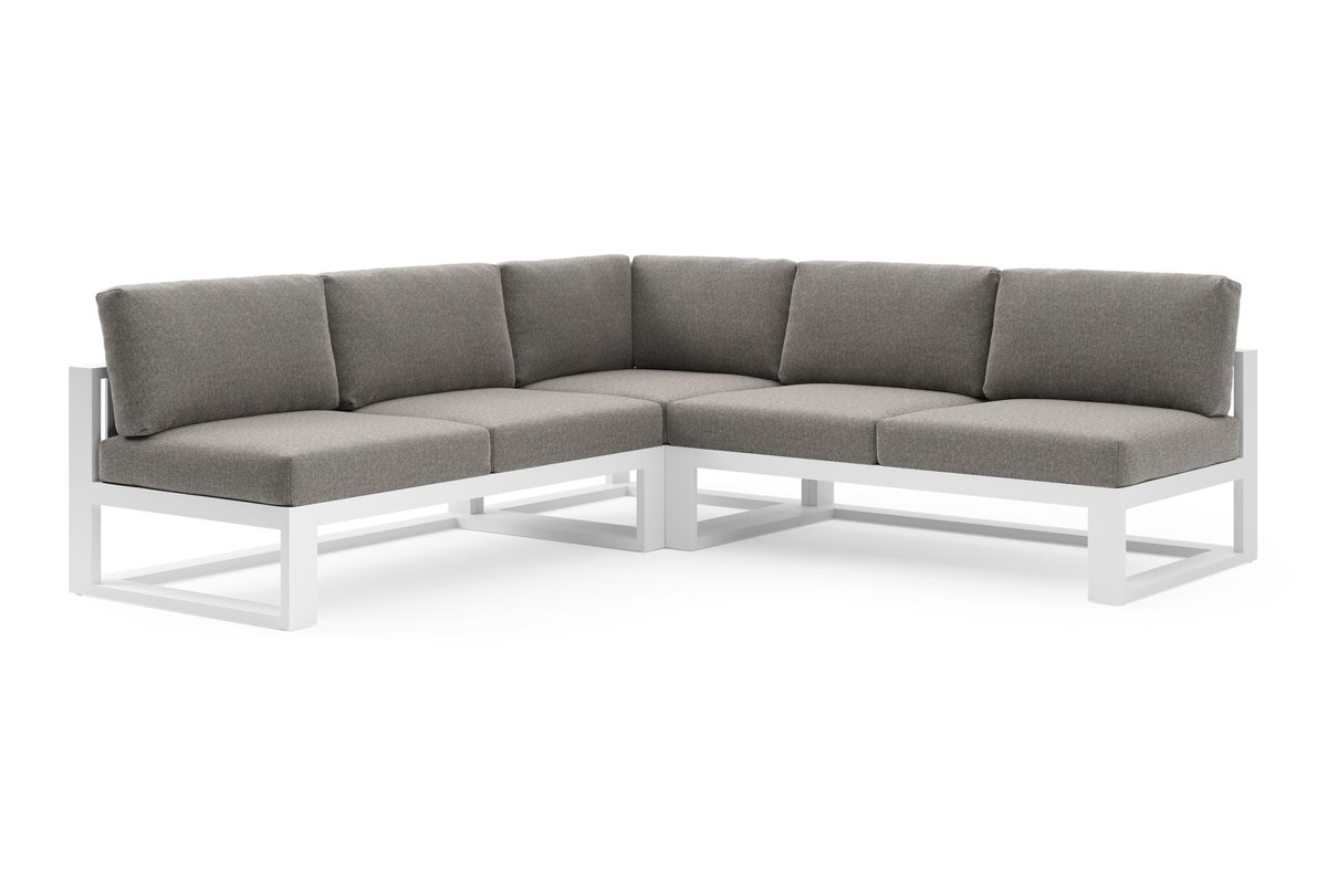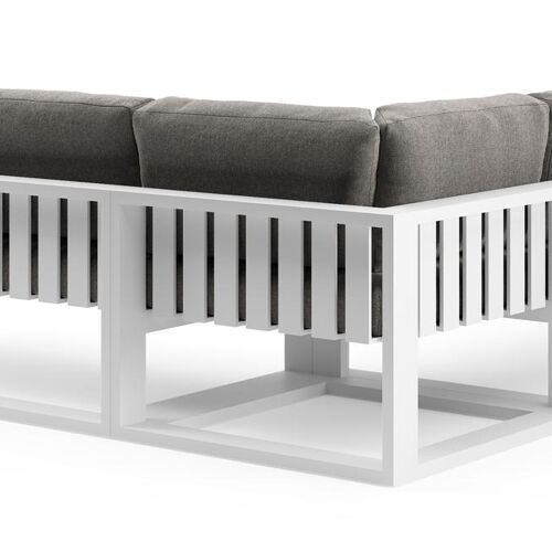 Verato loungehoek in wit aluminium met chartres drizzle all weather sunbrella® luxe kussen | Exterioo
