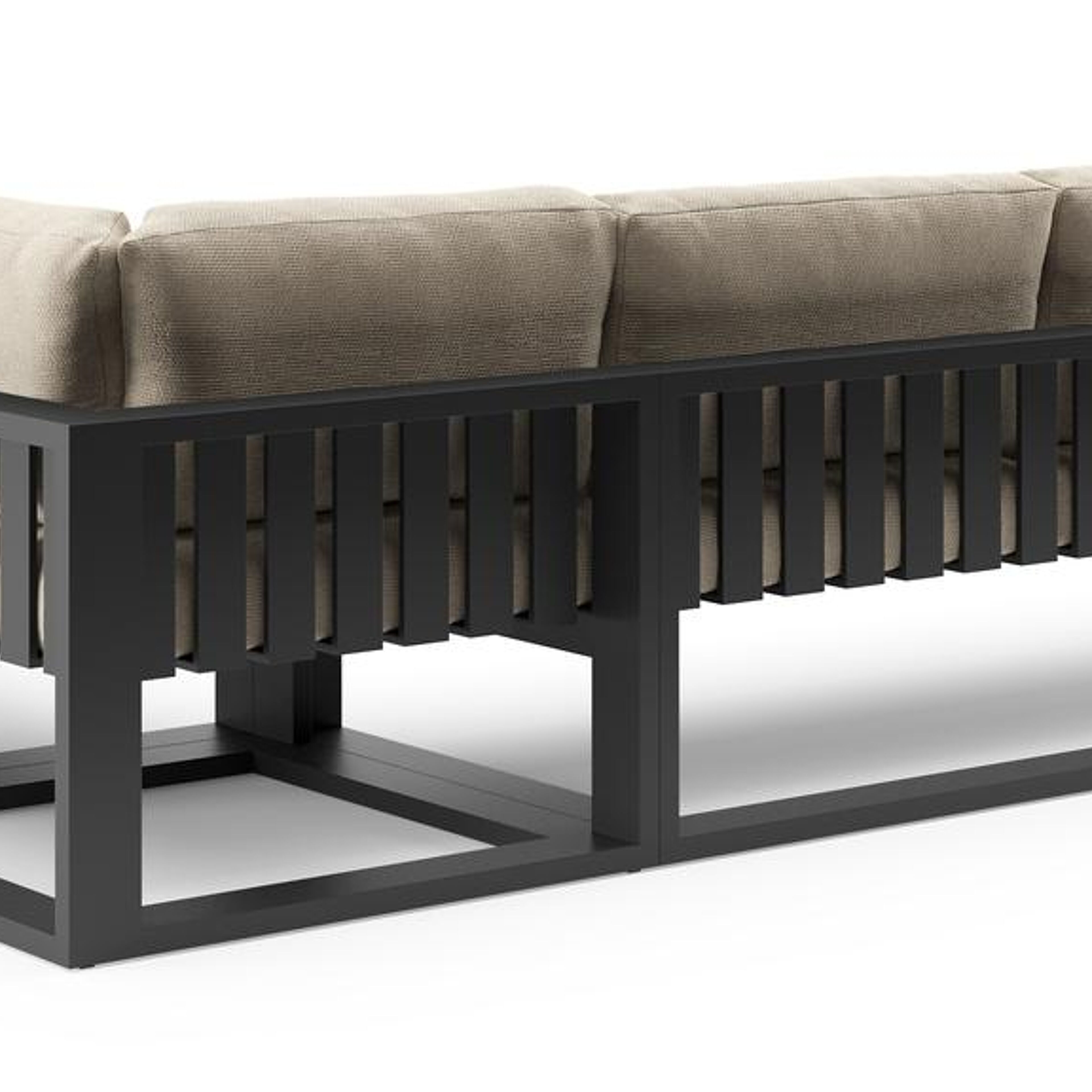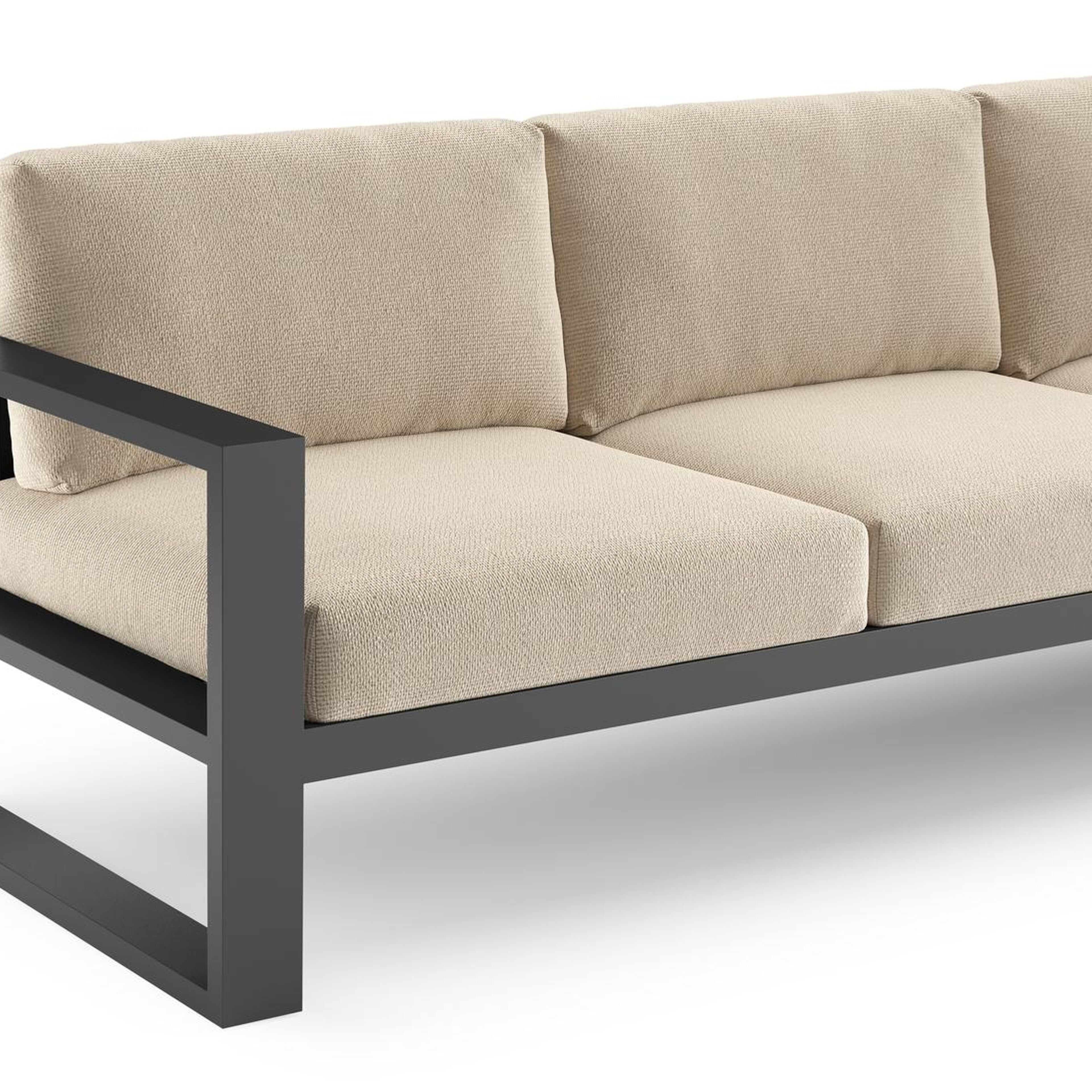 Verato loungehoek in zwart aluminium met althea chalk all weather cosytica kussen | Exterioo tuinmeubelen
