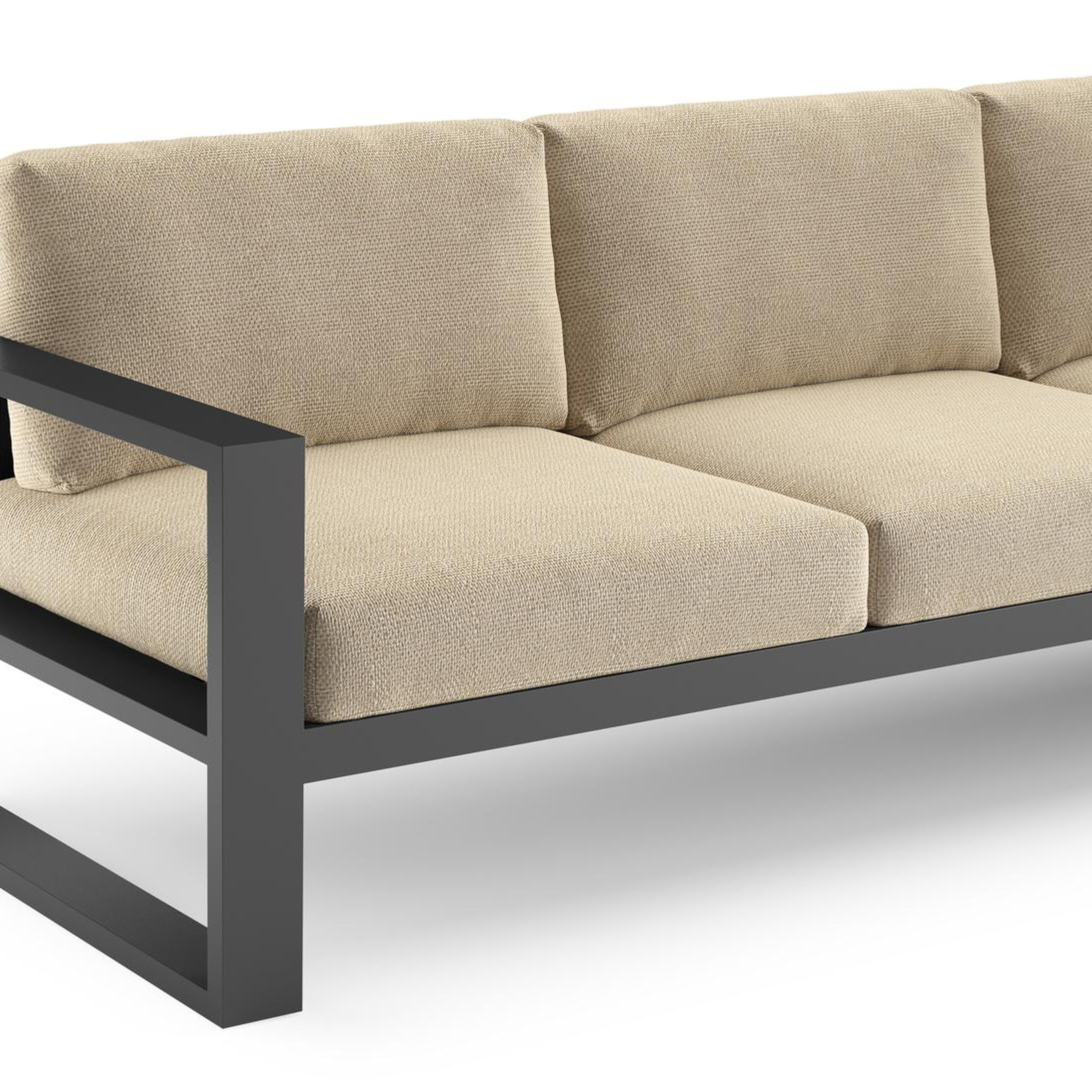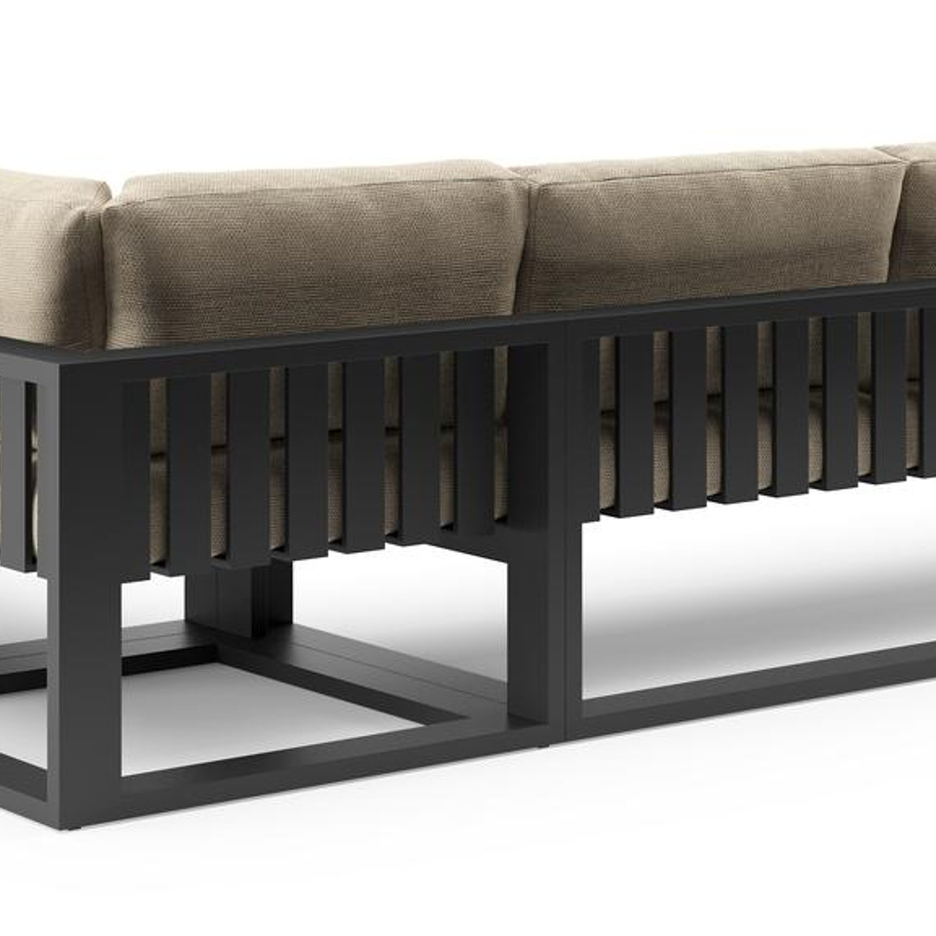 Verato loungehoek in zwart aluminium met althea camel all weather cosytica kussen | Exterioo tuinmeubelen