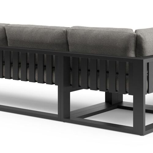 Verato loungehoek in zwart aluminium met tundra charcoal all weather sunbrella® luxe kussen | Exterioo