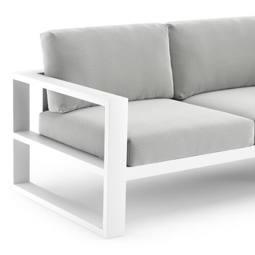 Verato loungehoek in wit aluminium met natte grey chine all weather sunbrella® luxe kussen | Exterioo