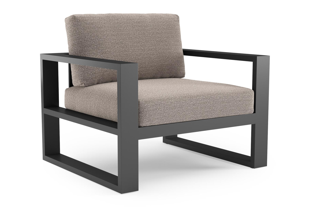 Verato loungestoel in zwart aluminium met wander granite all weather sunbrella® luxe kussen | Exterioo