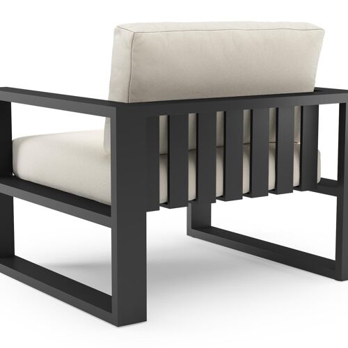 Verato loungestoel in zwart aluminium met natte white all weather sunbrella® luxe kussen | Exterioo