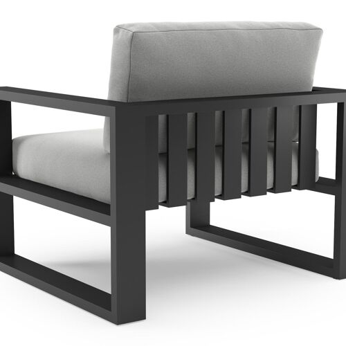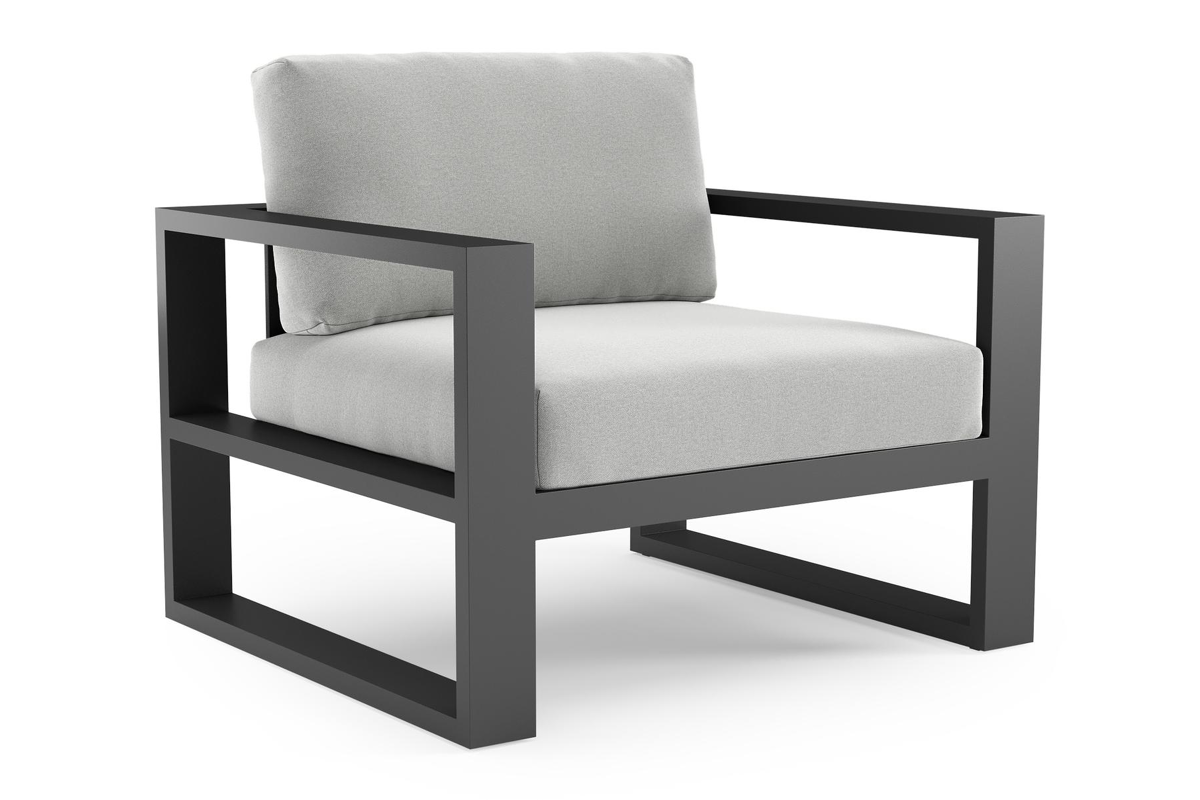 Verato loungestoel in zwart aluminium met natte grey chine all weather sunbrella® luxe kussen | Exterioo