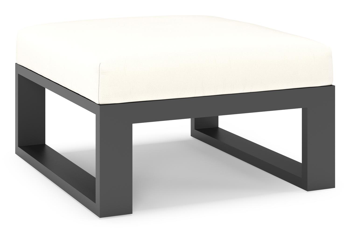 Verato poef in zwart aluminium met natte white all weather sunbrella® luxe kussen | Exterioo