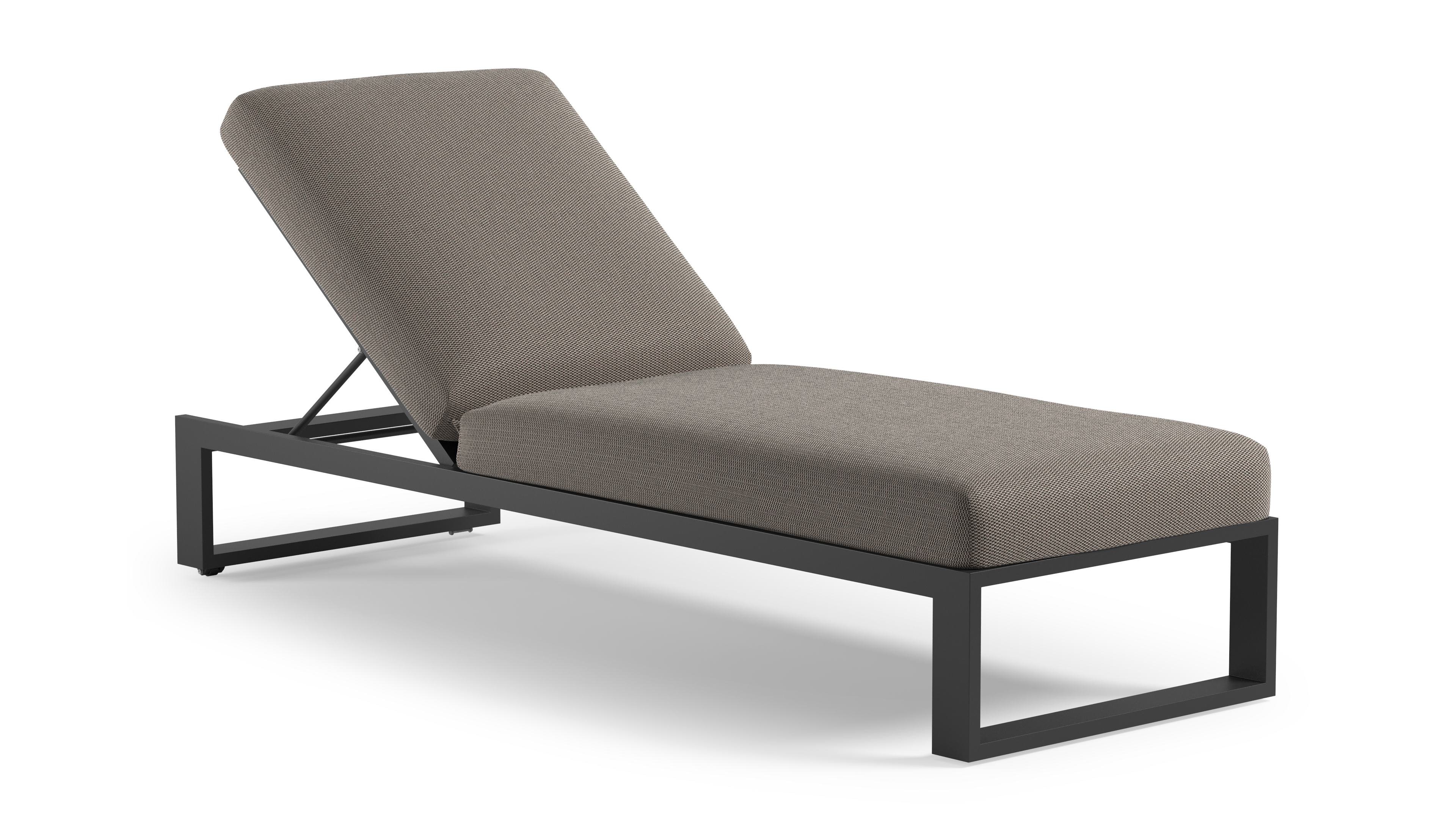 Verato verstelbaar ligbed in zwart aluminium met lopi pepper all weather Sunbrella® luxe kussen | Exterioo tuinmeubelen