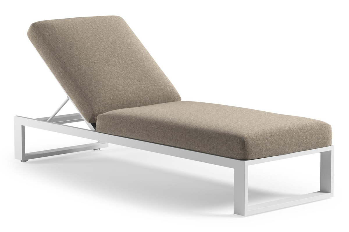 Verato verstelbaar ligbed in wit aluminium met chartres pewter all weather Sunbrella® luxe kussen | Exterioo