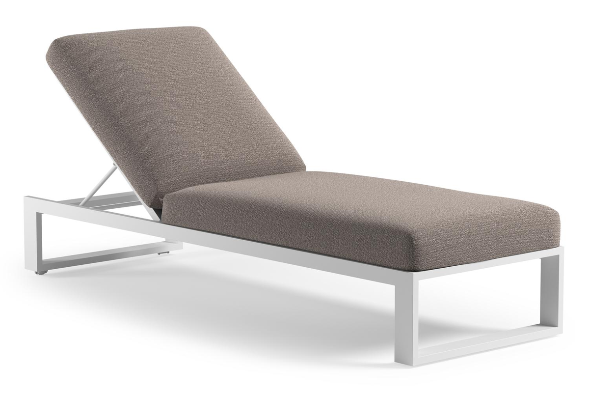 Verato verstelbaar ligbed in wit aluminium met wander granite all weather Sunbrella® luxe kussen | Exterioo