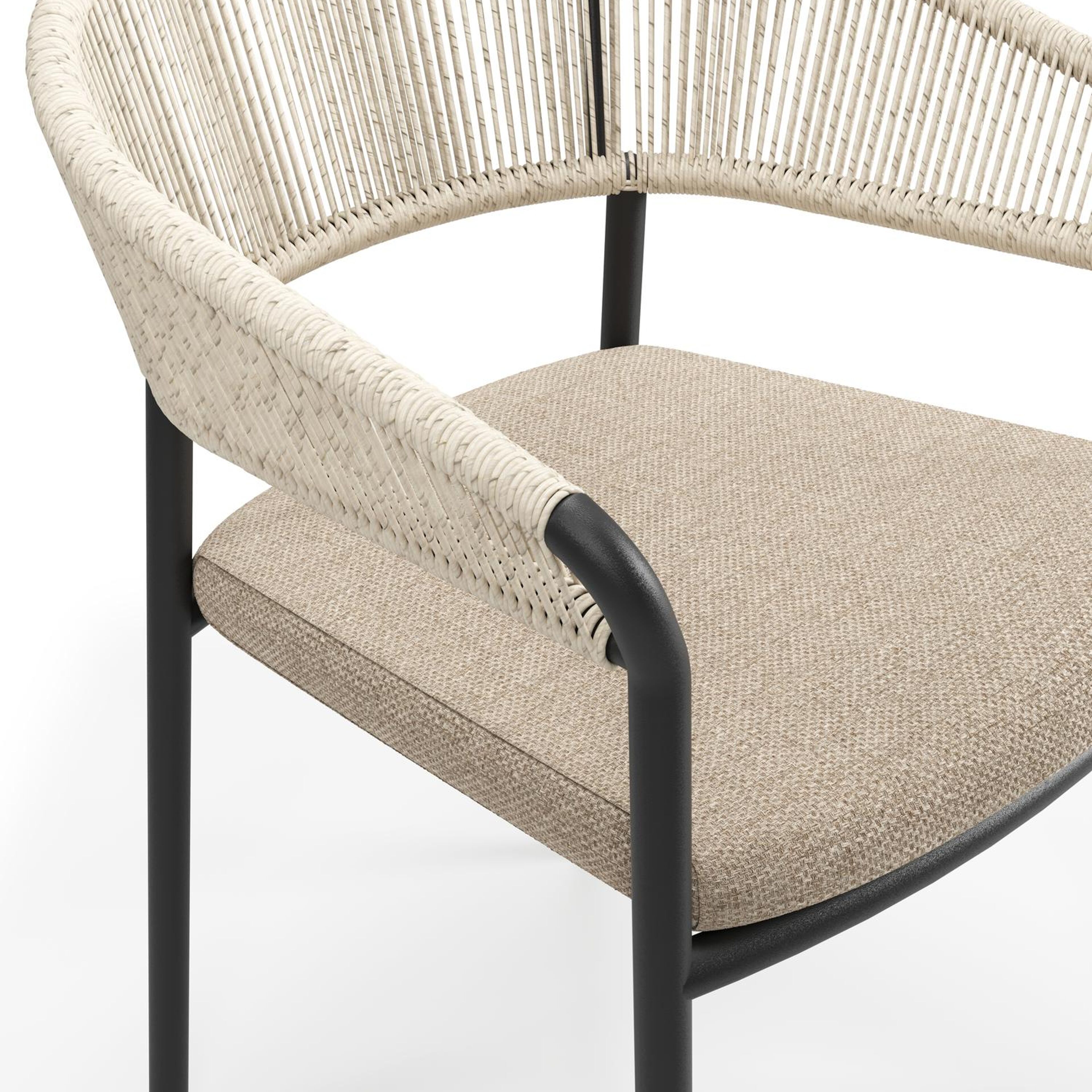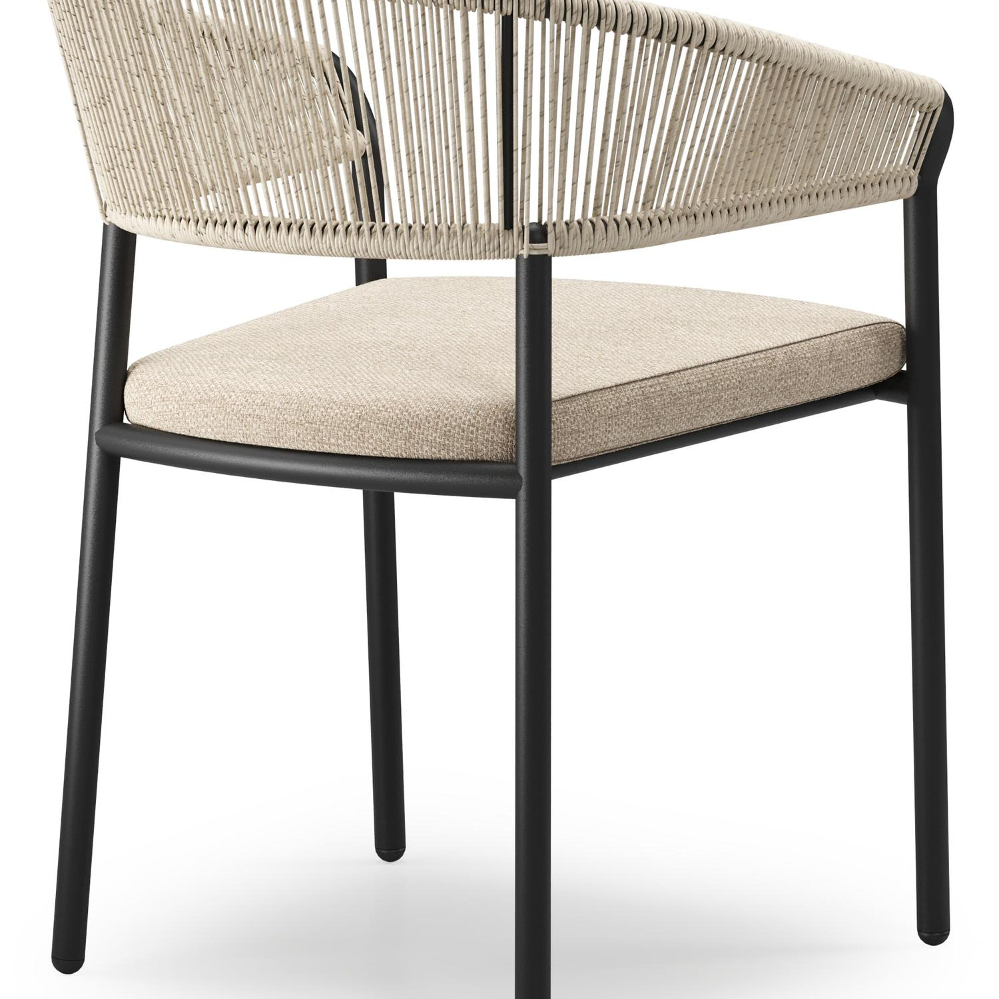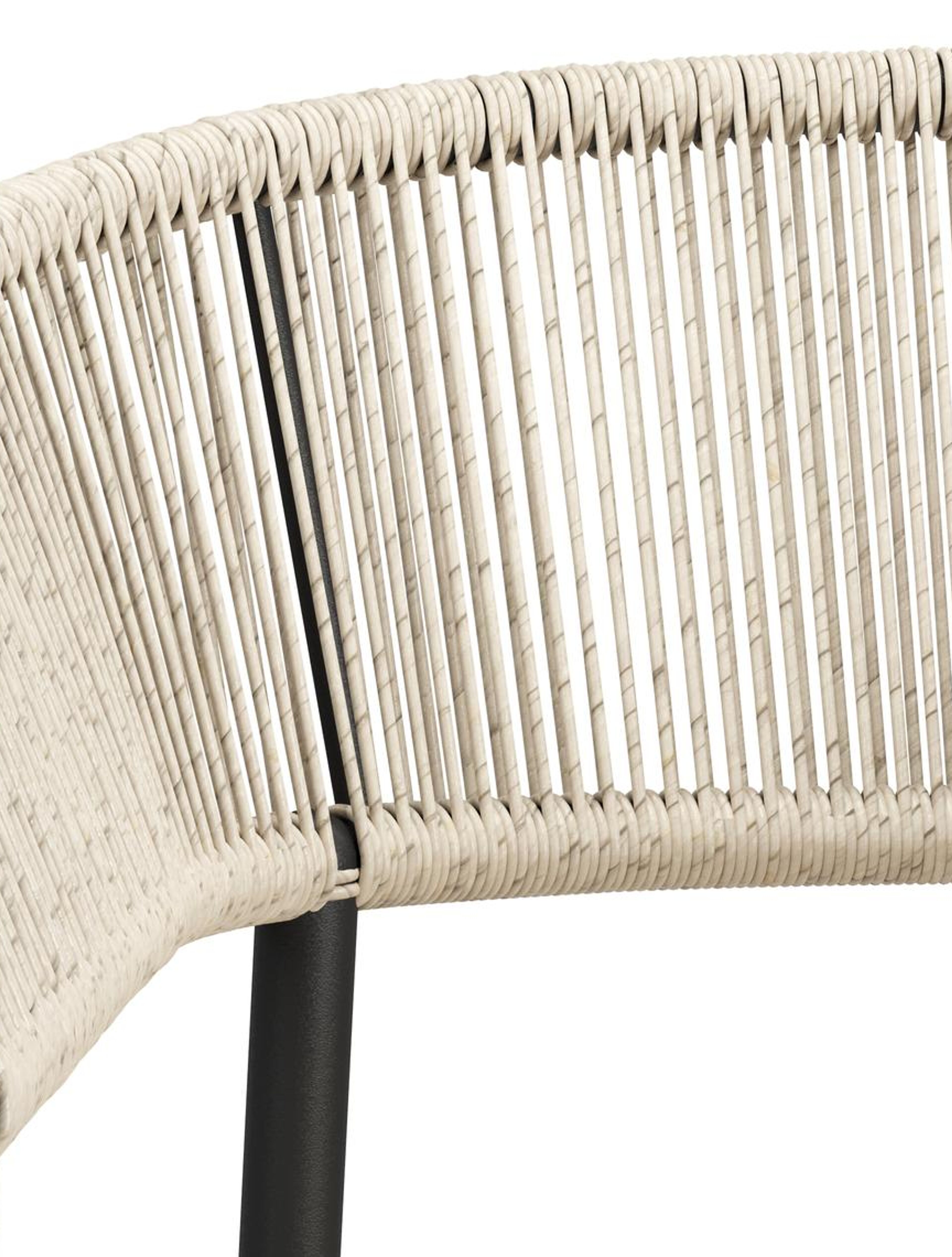 De Zamora tuinstoel combineert een stijlvolle uitstraling met een aangenaam zitcomfort. Het frame is gemaakt uit roestvrij aluminium. De rugleuning en armleuning zijn volledig afgewerkt met rope voor een hedendaagse elegante touch. De stoel is stapelbaar en dus makkelijk op te bergen. De stoelkussens zijn inbegrepen en gemaakt uit Weather+ Softtouch. De duurzame kussens voelen zacht aan en zijn vuilafstotend. Weather+ Softtouch kussens zijn beperkt waterafstotend. In de winter of bij langdurige regen bewaar je de kussens best binnen.