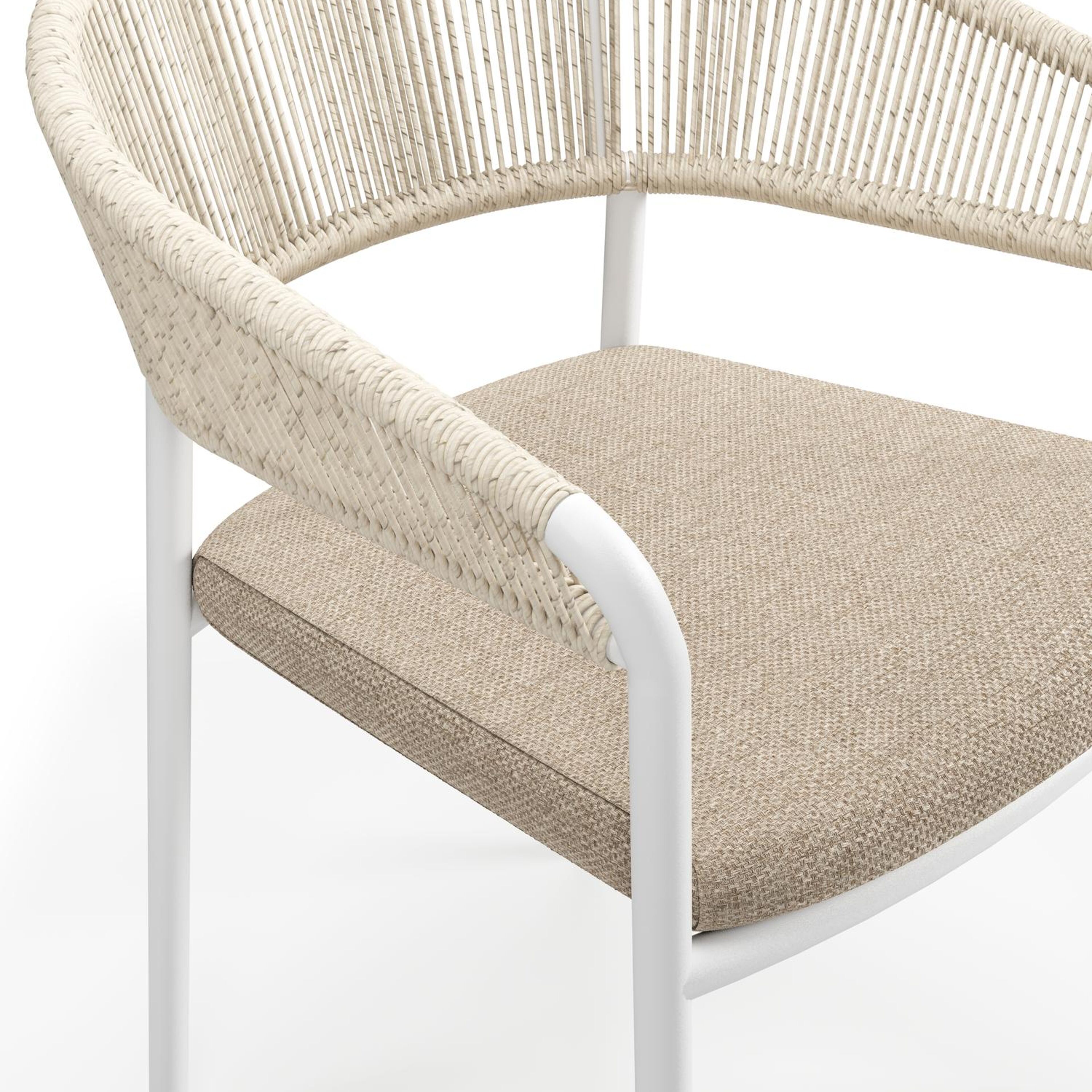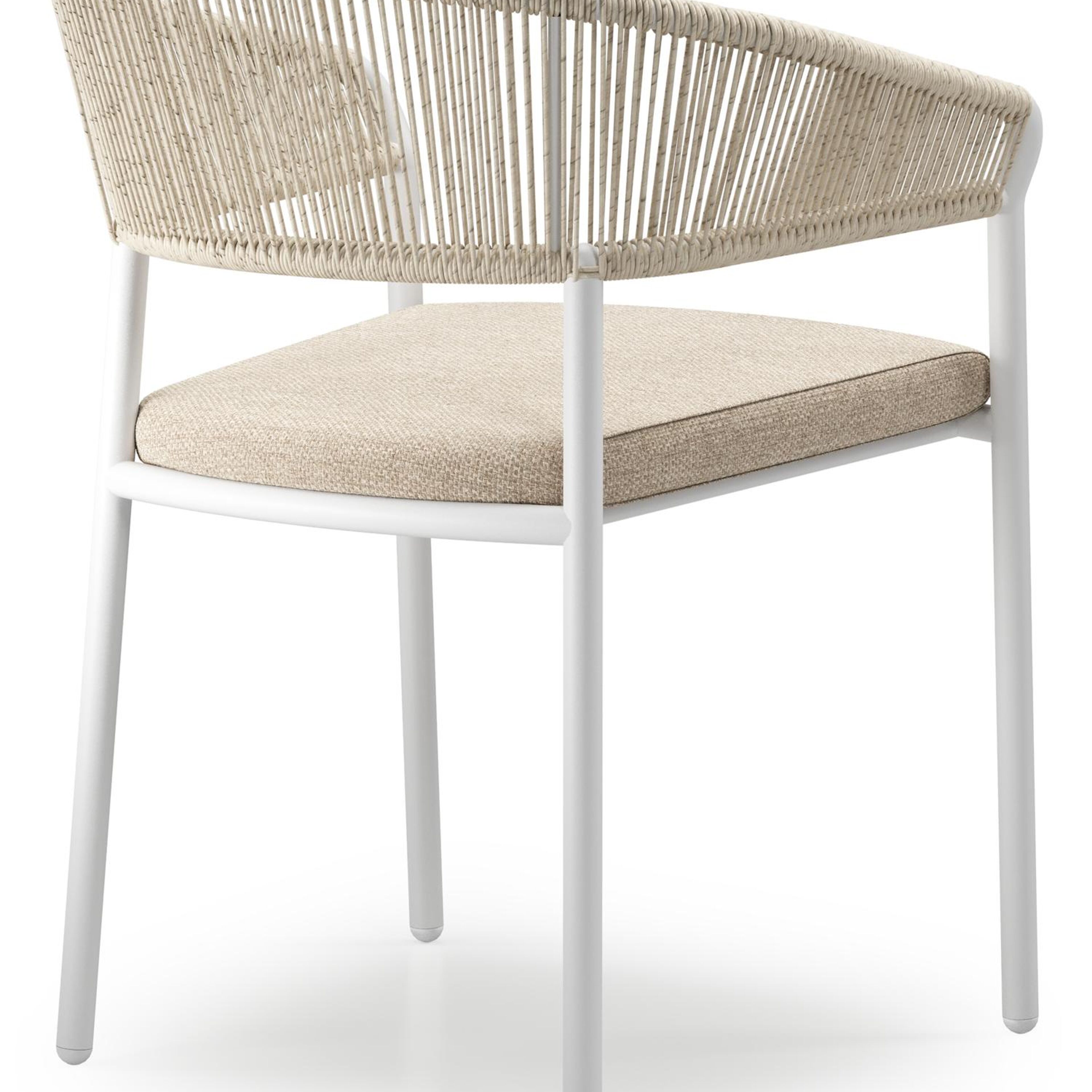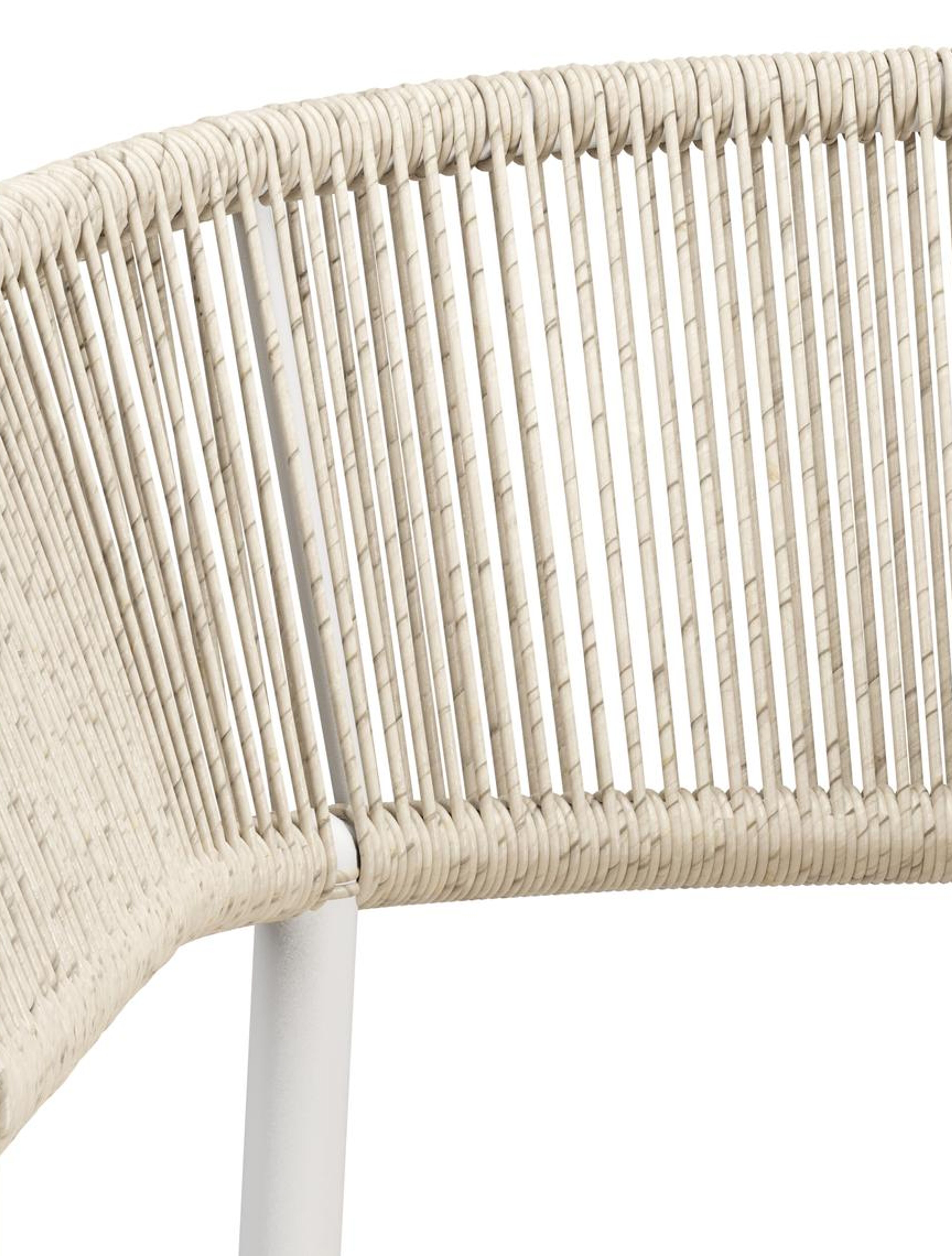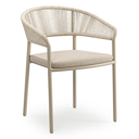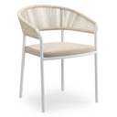 De Zamora tuinstoel combineert een stijlvolle uitstraling met een aangenaam zitcomfort. Het frame is gemaakt uit roestvrij aluminium. De rugleuning en armleuning zijn volledig afgewerkt met rope voor een hedendaagse elegante touch. De stoel is stapelbaar en dus makkelijk op te bergen. De stoelkussens zijn inbegrepen en gemaakt uit Weather+ Softtouch. De duurzame kussens voelen zacht aan en zijn vuilafstotend. Weather+ Softtouch kussens zijn beperkt waterafstotend. In de winter of bij langdurige regen bewaar je de kussens best binnen.